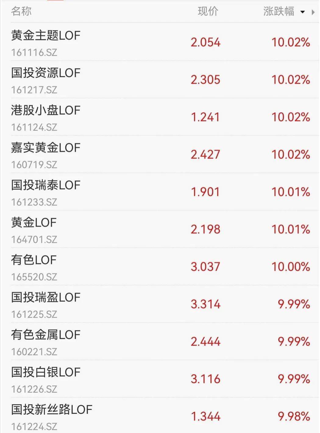 当天场内多只商品LOF居品涨停12月24日,外洋黄金、白银价钱接连创下新高。 当天,场内多只商品LOF居品涨停,包括黄金主题LOF、嘉实黄金LOF、黄金LOF、有色LOF、有色金属LOF、国投白银LOF等诸多居品。此外,国投瑞银基金旗下的国投资源LOF、国投瑞泰LOF、国投瑞盈LOF、国投新丝路LOF等多只LOF居品也集体涨停。【详见】